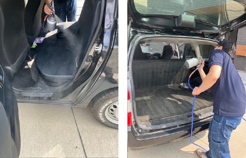 こちらは、上記冷蔵庫用に用意したAIリキッドの原液が少し余った為、メーカー様の粋なはからいで、お客様の営業車にも「消臭・除菌効果」を期待して サービスで吹付を行なって頂きました。
